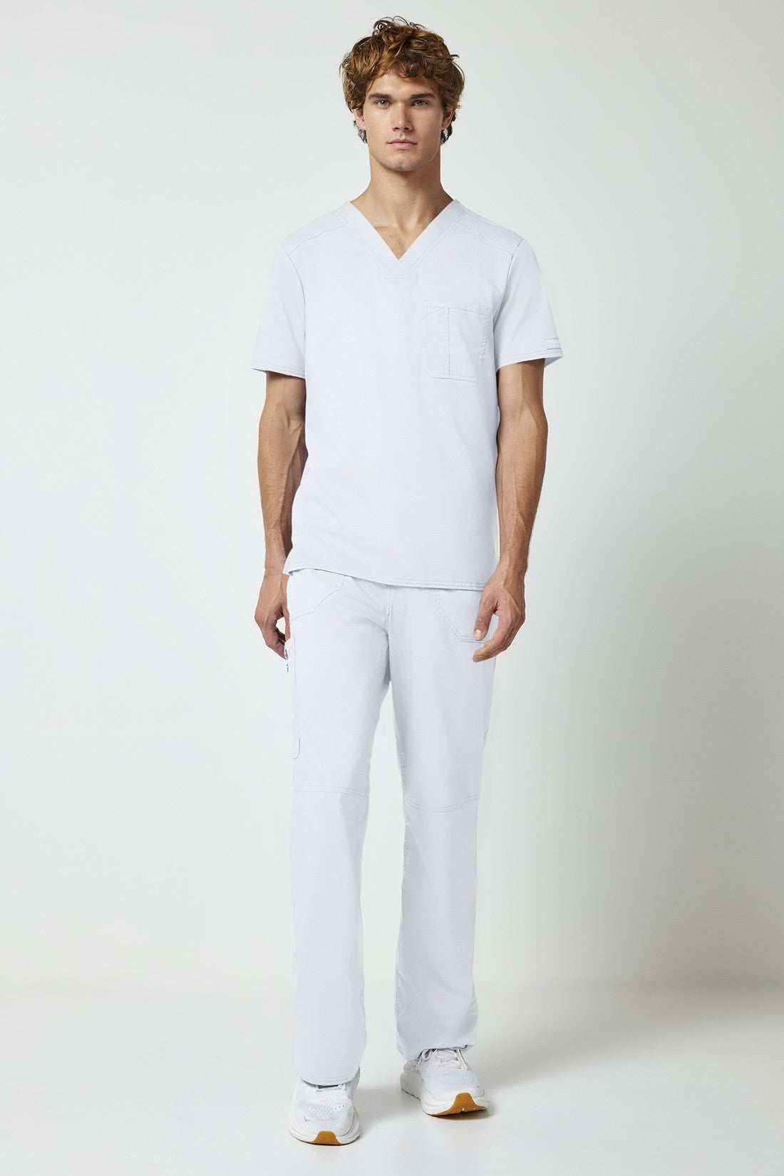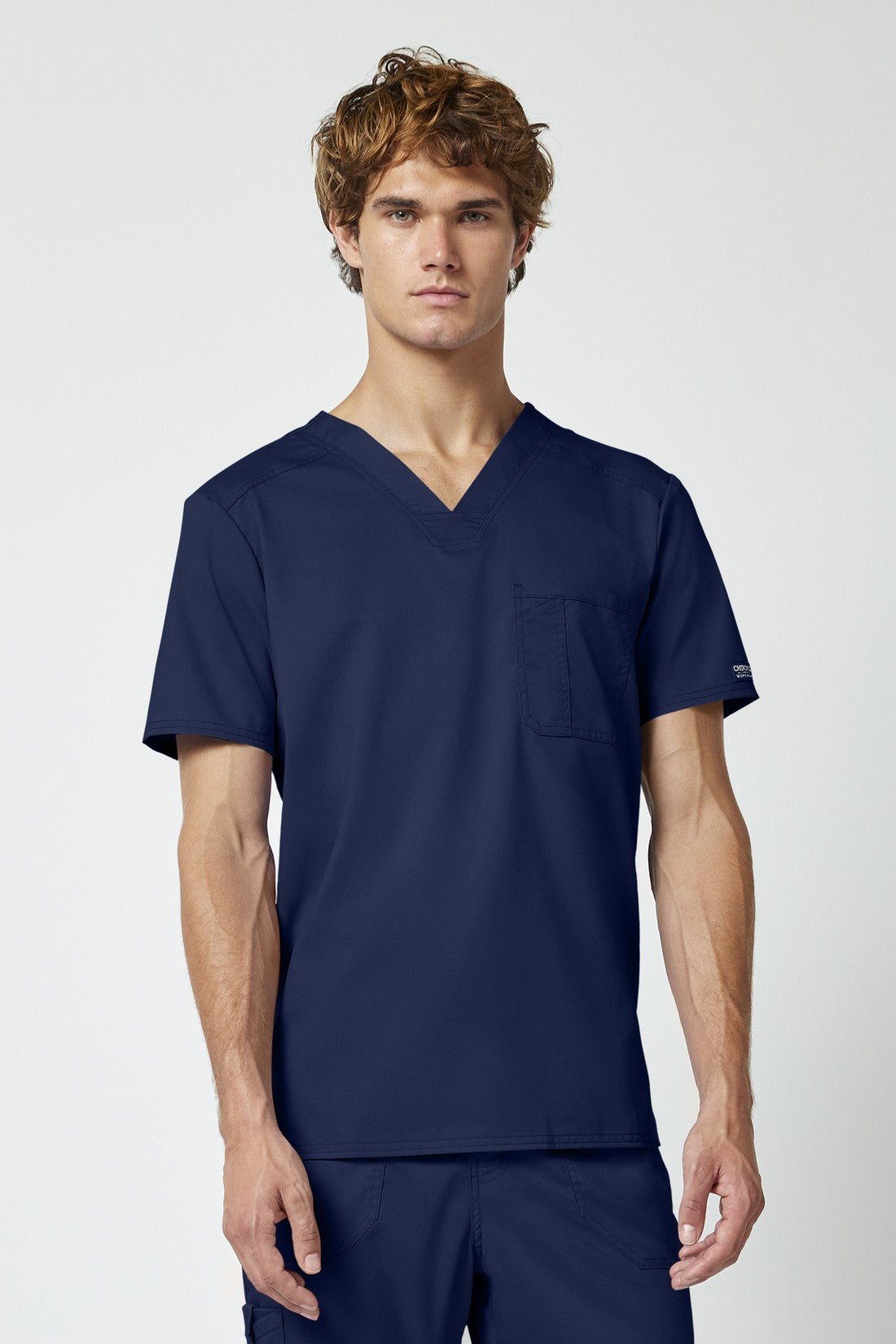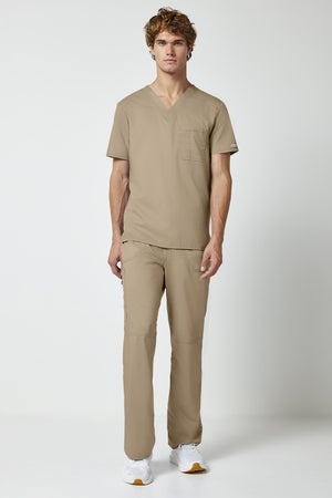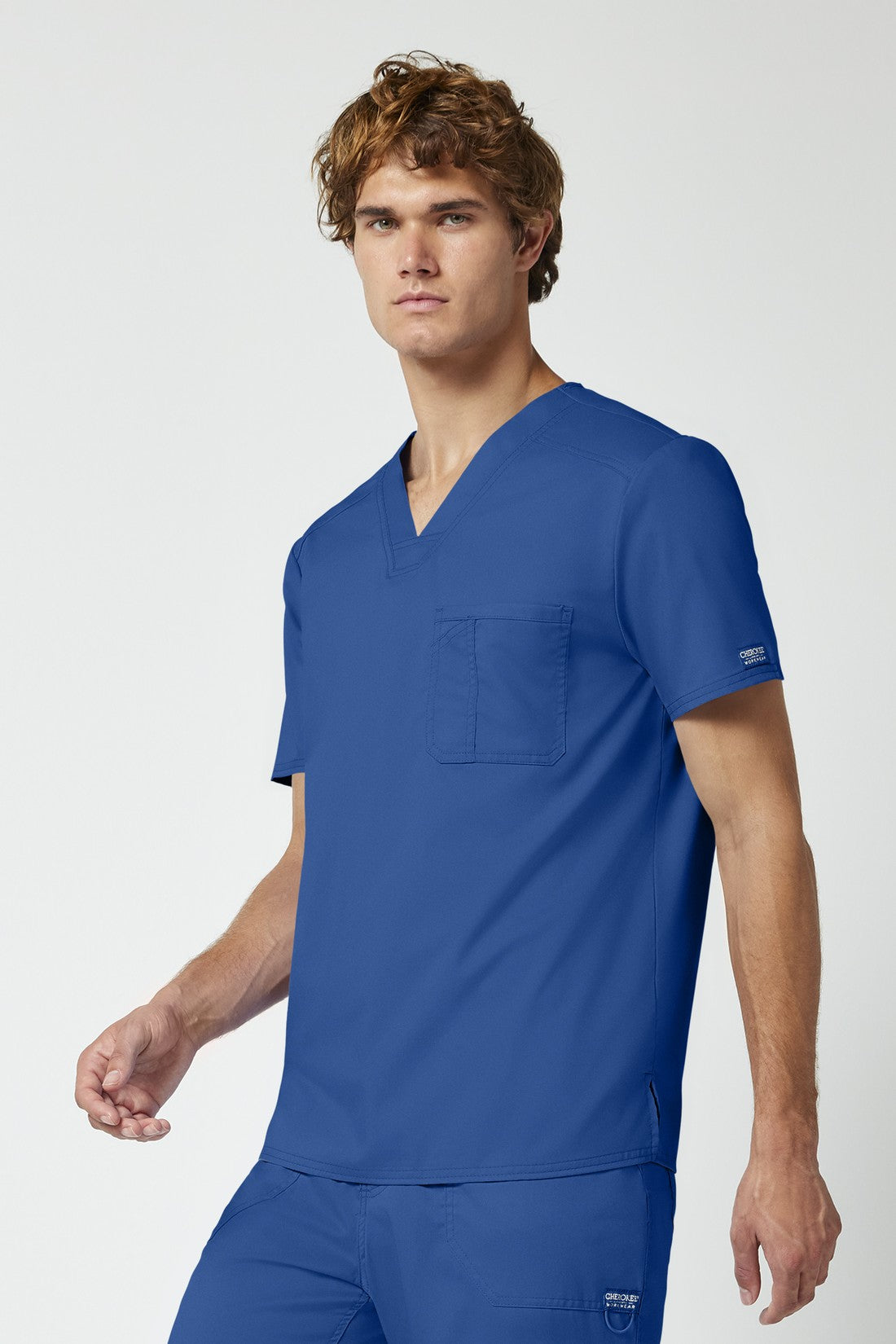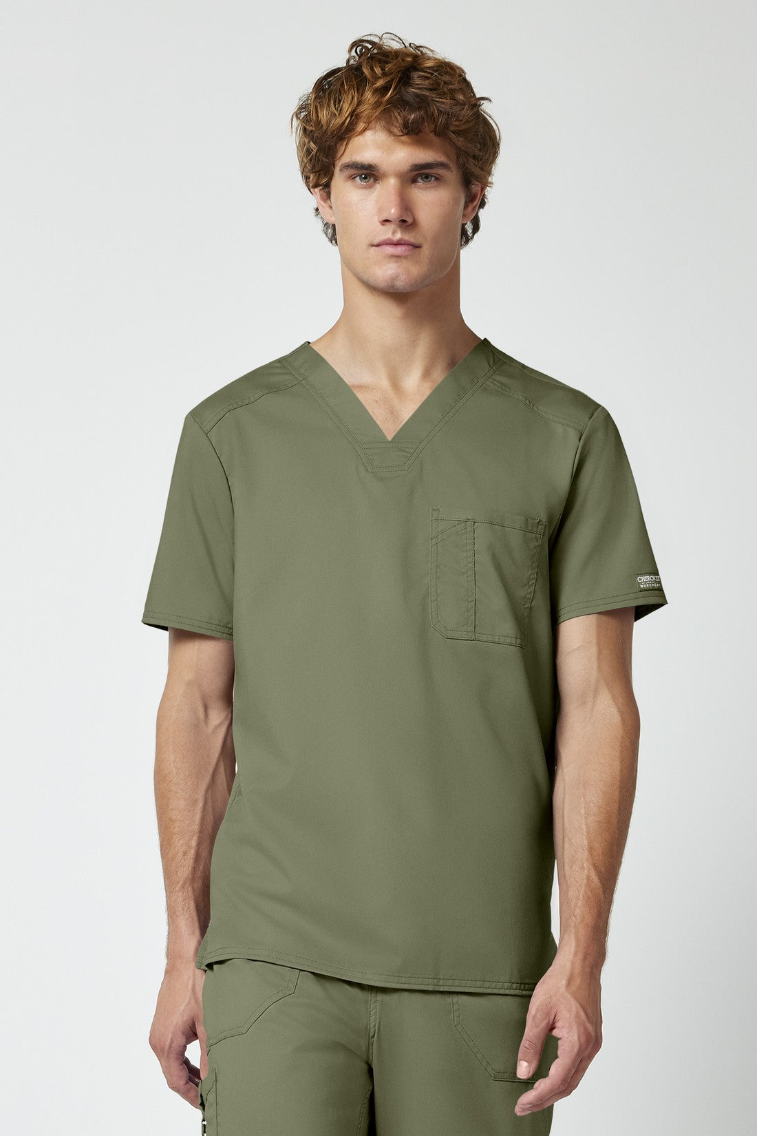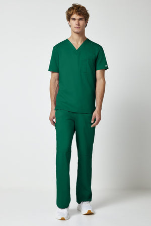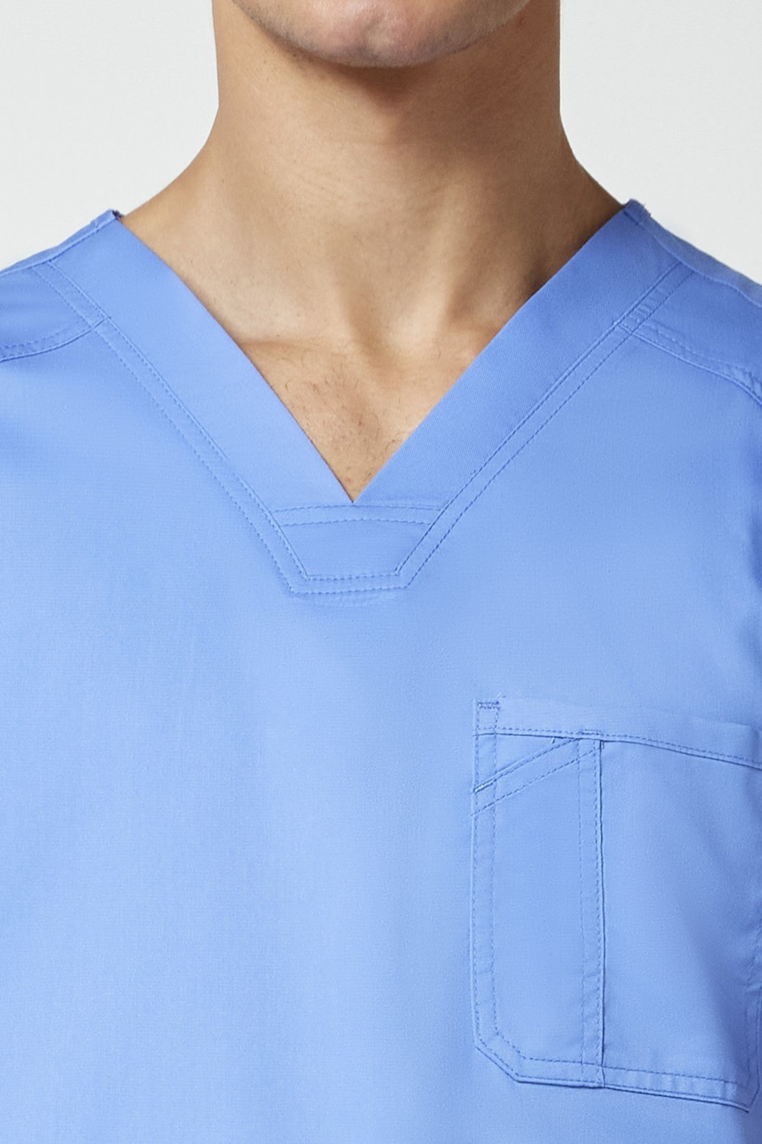 La camiseta de cuello en V de corte moderno para hombre cuenta con un bolsillo en el pecho con un bolsillo adicional para bolígrafos, un canesú en la espalda y aberturas laterales. Este estilo se ve muy bien metido o sin meter. Longitud en el centro de la espalda: 29