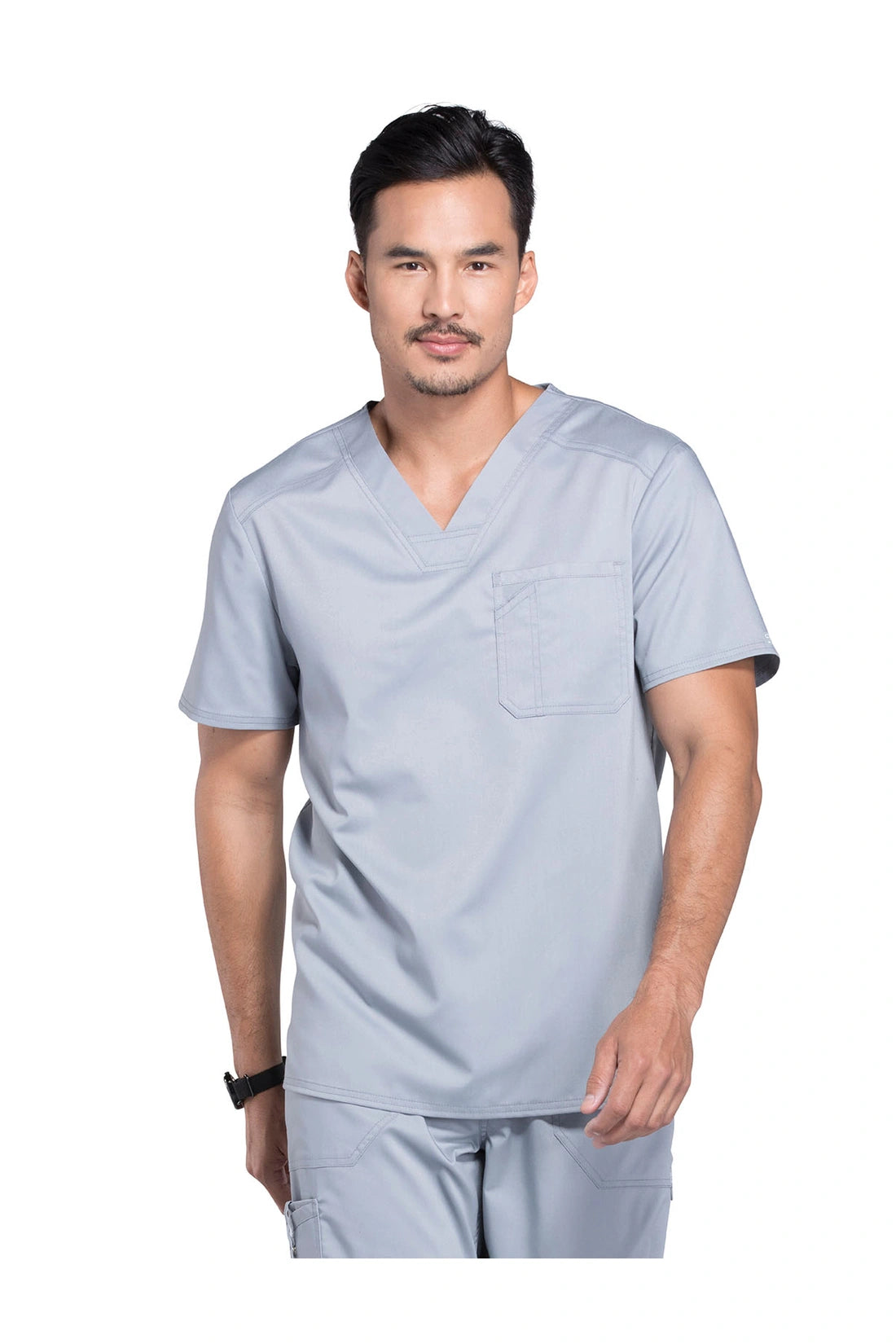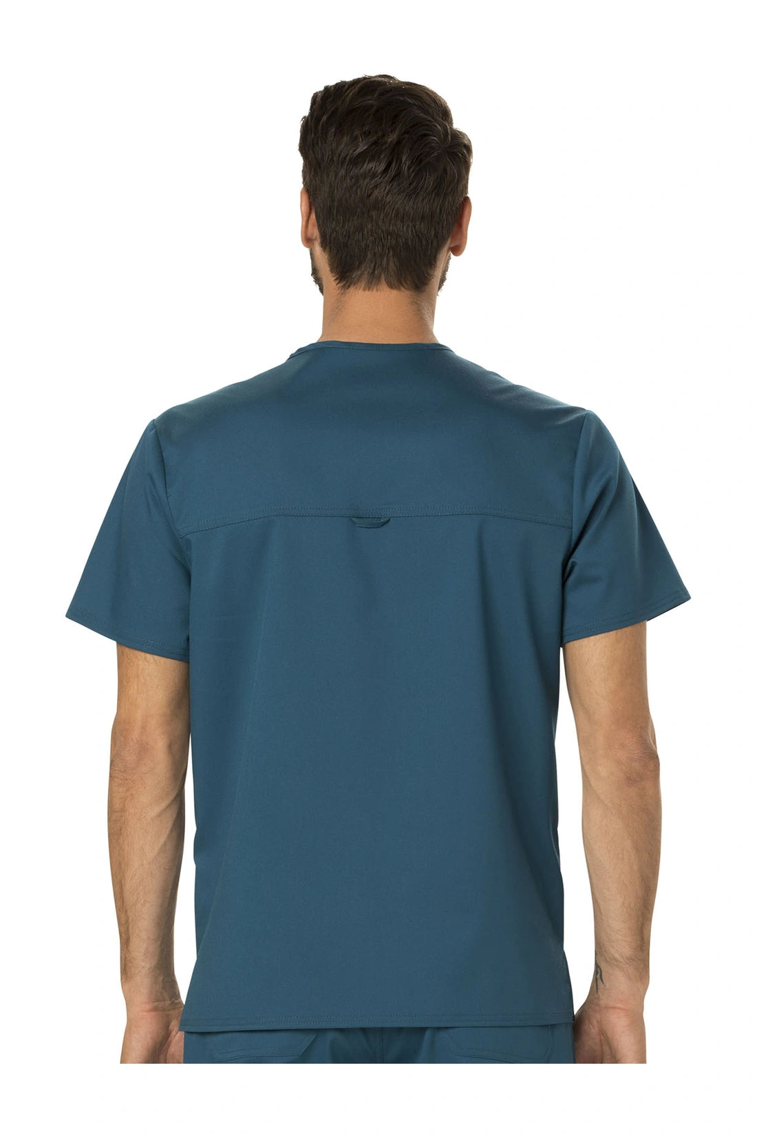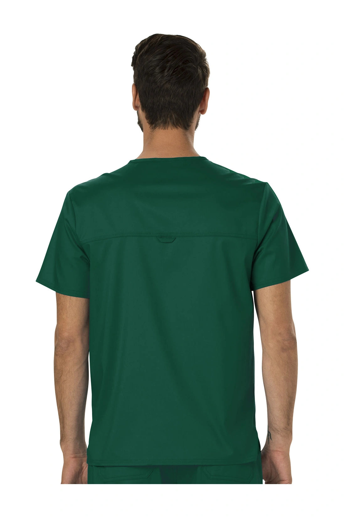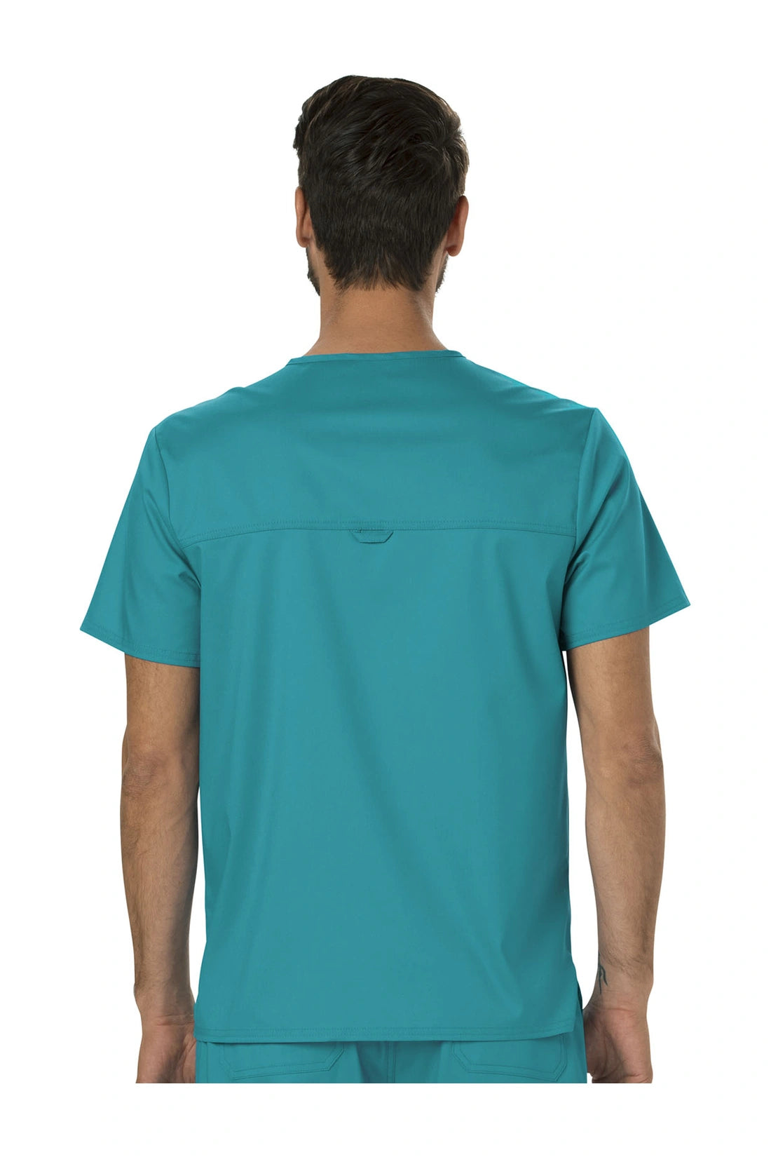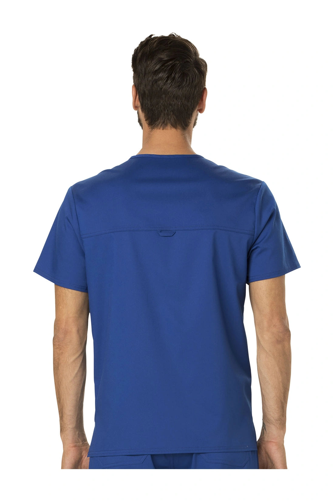 La camiseta de cuello en V de corte moderno para hombre cuenta con un bolsillo en el pecho con un bolsillo adicional para bolígrafos, un canesú en la espalda y aberturas laterales. Este estilo se ve muy bien metido o sin meter. Longitud en el centro de la espalda: 29