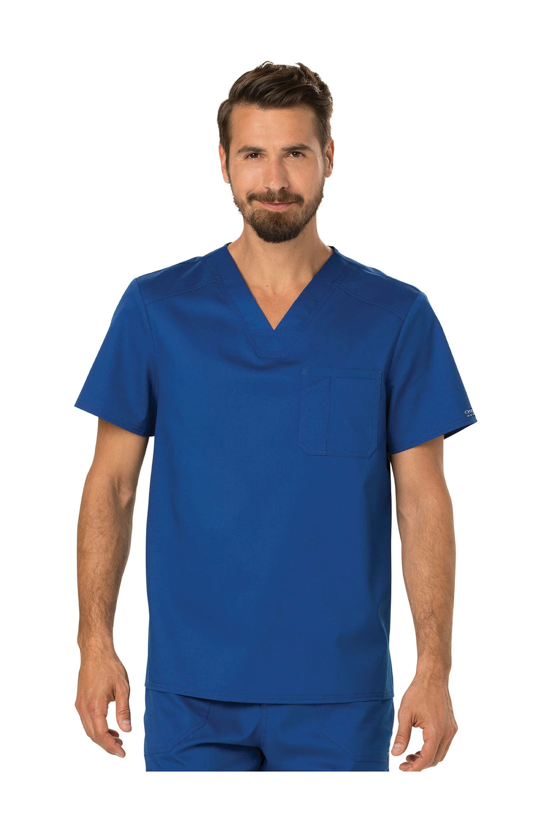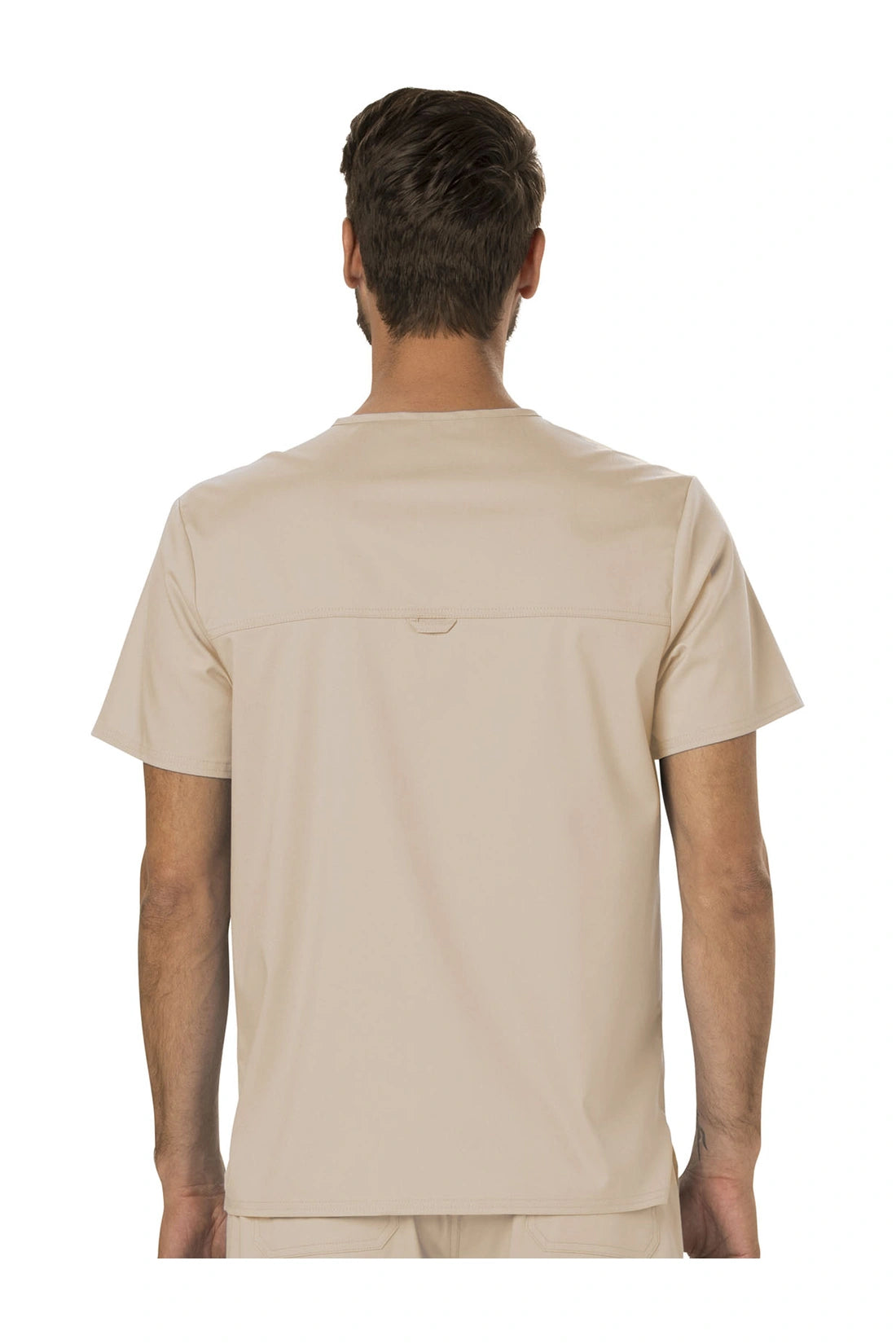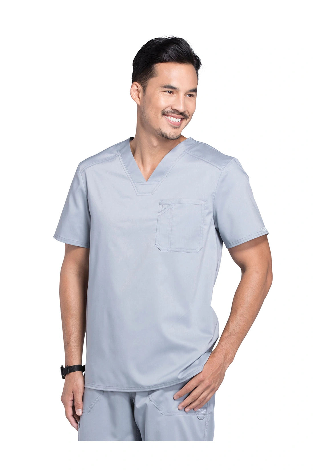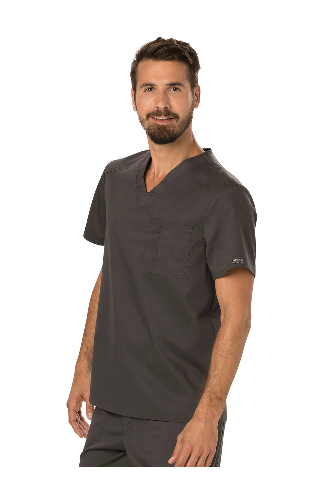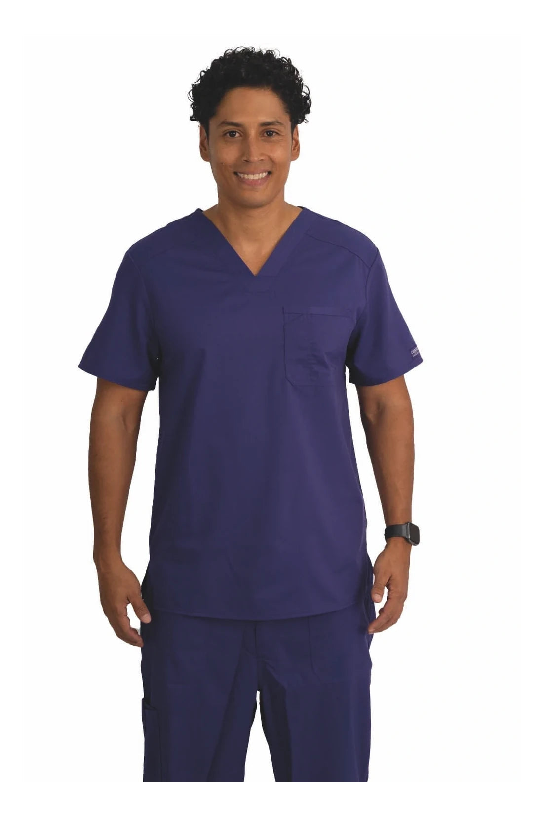 La camiseta de cuello en V de corte moderno para hombre cuenta con un bolsillo en el pecho con un bolsillo adicional para bolígrafos, un canesú en la espalda y aberturas laterales. Este estilo se ve muy bien metido o sin meter. Longitud en el centro de la espalda: 29