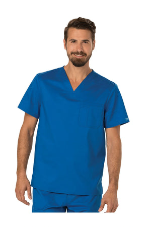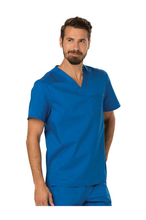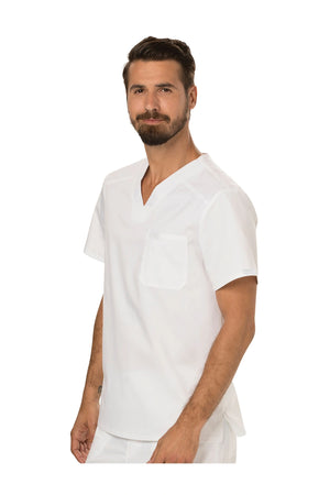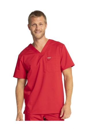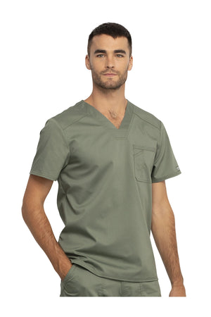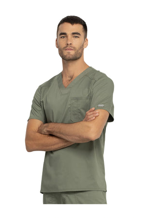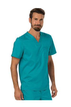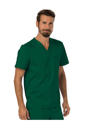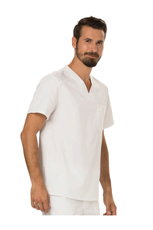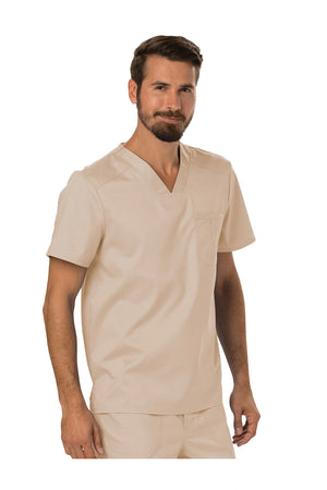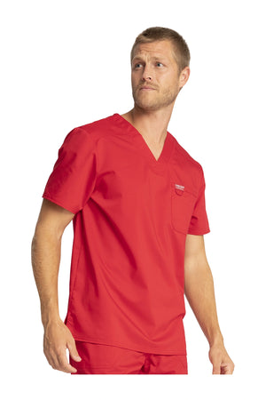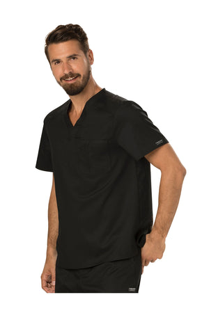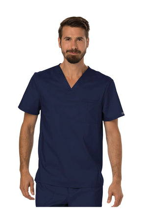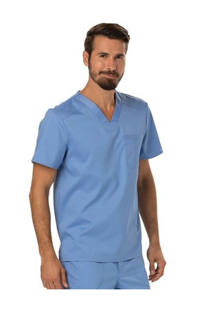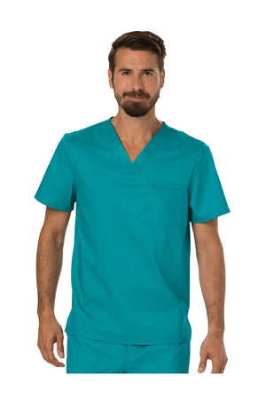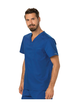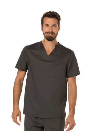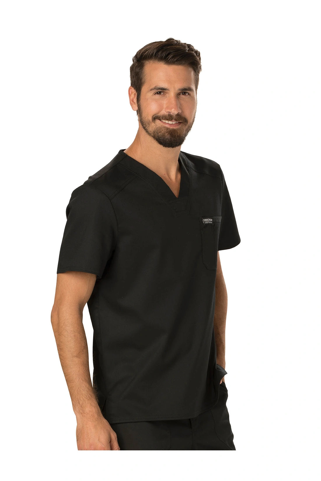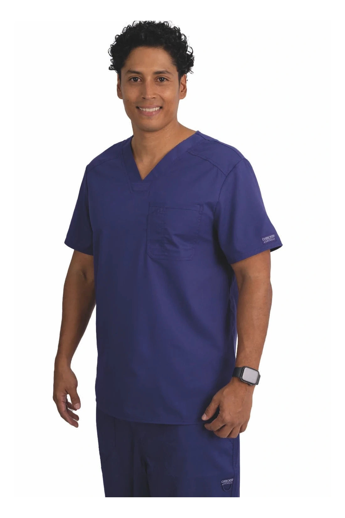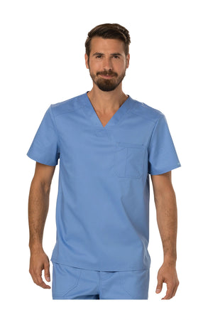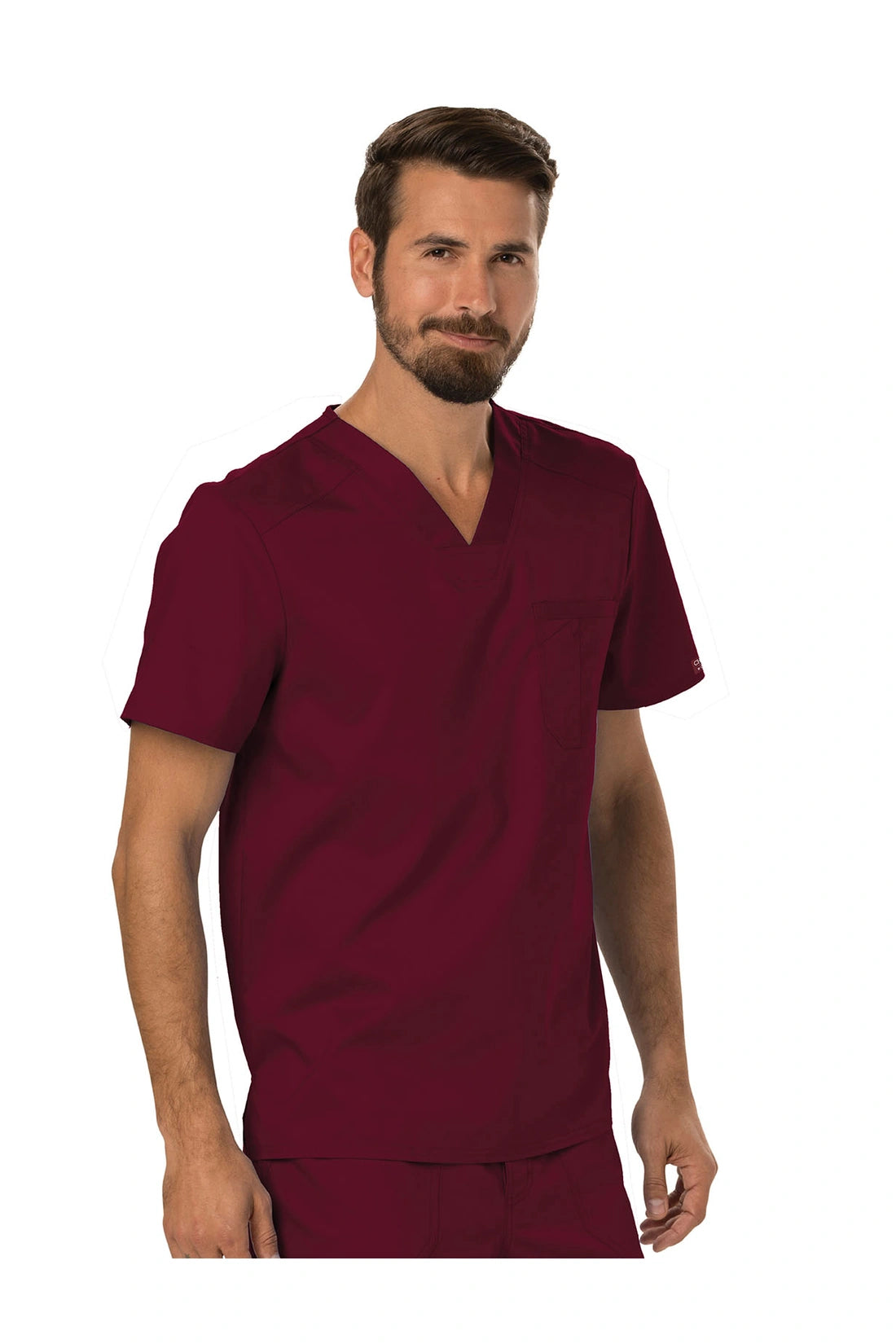 La camiseta de cuello en V de corte moderno para hombre cuenta con un bolsillo en el pecho con un bolsillo adicional para bolígrafos, un canesú en la espalda y aberturas laterales. Este estilo se ve muy bien metido o sin meter. Longitud en el centro de la espalda: 29